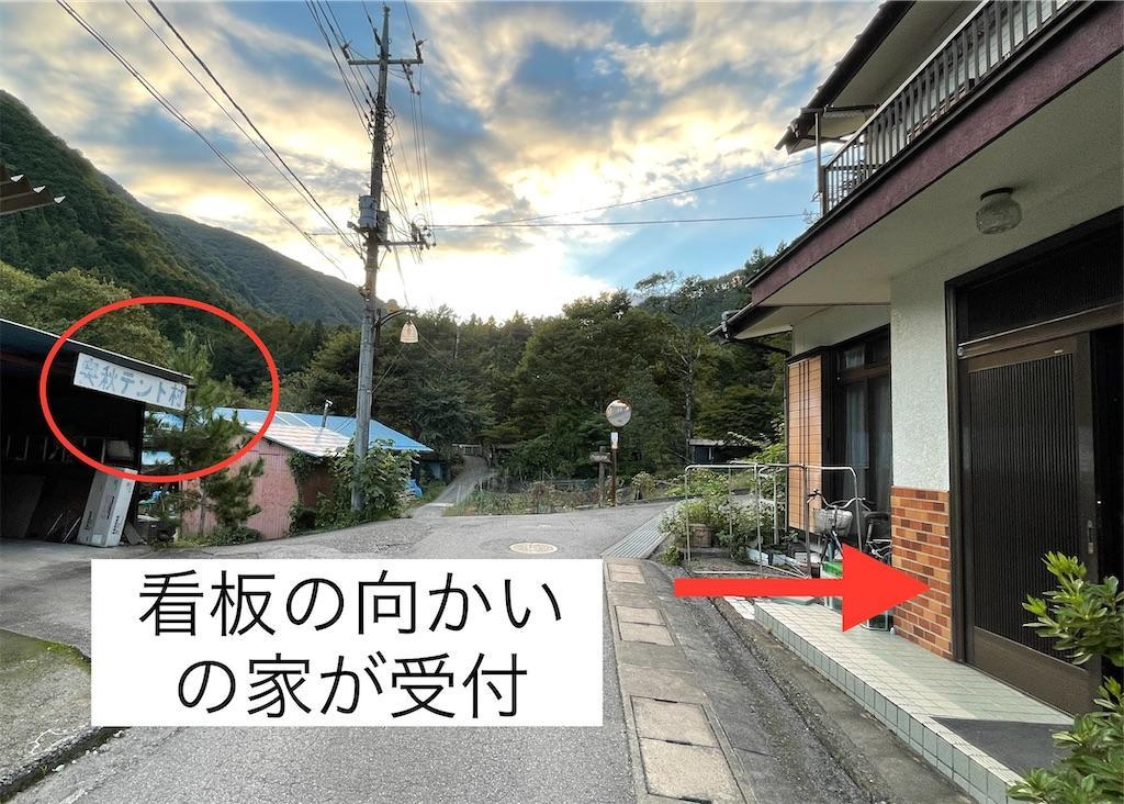 さらに戸惑うかもしれないのが、奥秋テント村のオーナーさん宅の隣は別のキャンプ場の受付です。普通の隣り合う家が各々別のキャンプ場の受付になっています。(隣は木下ファミリーキャンプ場)